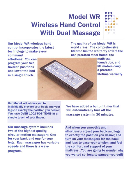MATTRESS and firmness, hand control and optional massage system, brackets and